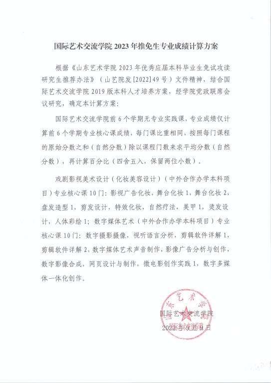 国际艺术交流学院2023年推免生专业成绩计算方案