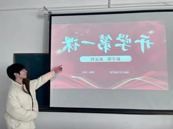 为提高师生安全防范意识,帮助同学们尽快进入学习状态,国际艺术交流学院于2月26日下午18:30在国际艺术交流学院多媒体A教室组织开展了“开学第一课”主题活动,本次活动由学习宣讲部组织,学习宣讲部副部长韩宇主持。