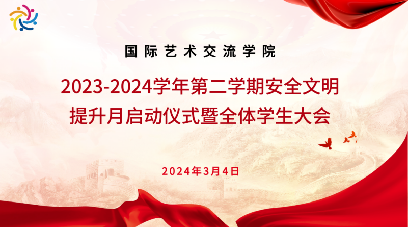 新学期伊始,为进一步加强学生的安全防范意识,筑牢安全防线,规范日常行为,3月4日18时,国际艺术交流学院2023-2024学年第二学期安全文明提升月启动仪式暨全体学生大会在图书馆报告厅举行。会议由团总支书记主持,国际艺术交流学院党总支书记、济南市公安局长清区分局高级警长驻高校专班负责人葛广中政委、住校警长郭拥军大队长、学校安全管理处李伟庆科长、国际艺术交流学院全体学生参加。