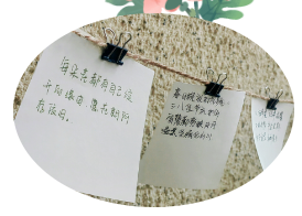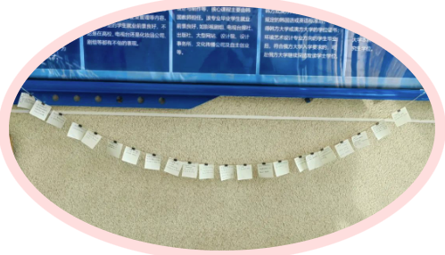 活动现场,同学们温故妇女节的由来,在便签上写下三行情诗,写下对新时代女性坚韧的赞美。随后由现场志愿者们整合这些“情诗”,将它们系到绳子上,留下本次活动的美好纪念。