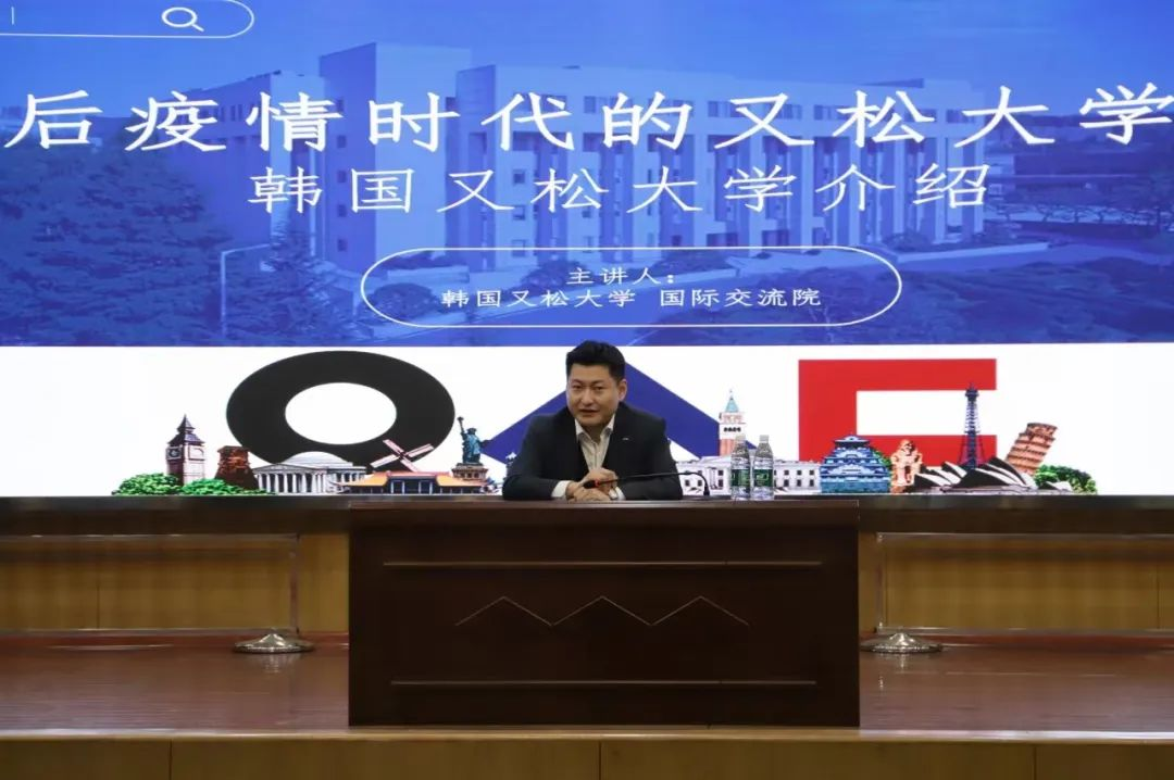 3月29日上午,韩国又松大学中国事务处处长刘念应邀来到我院,以“后疫情时代的又松大学”为主题,在图书馆报告厅为我院学生讲解了中外合作办学的人才培养模式。