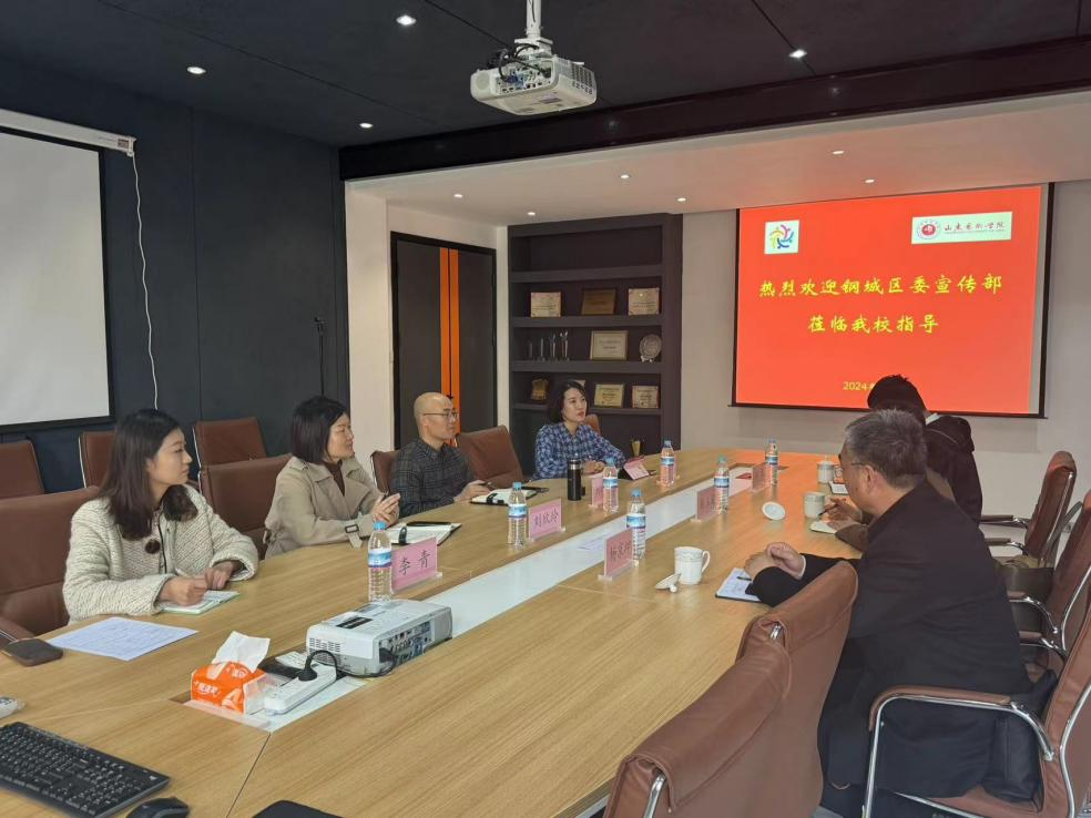刘院长代表国际艺术交流学院对济南市钢城区委宣传部一行莅临我院交流来访表示热烈欢迎,靳部长对我院的热情接待表示感谢。双方达成共识,希望能够继续加强深度交流合作,共同开展更多有意义的项目,促进地方特色与文化艺术教育事业共同繁荣发展。会上,双方基于当地特色文化旅游节开展深度合作、人才培养、师生实践等进行讨论,进一步探究人才培养新模式,提升钢城文化内涵及影响力。