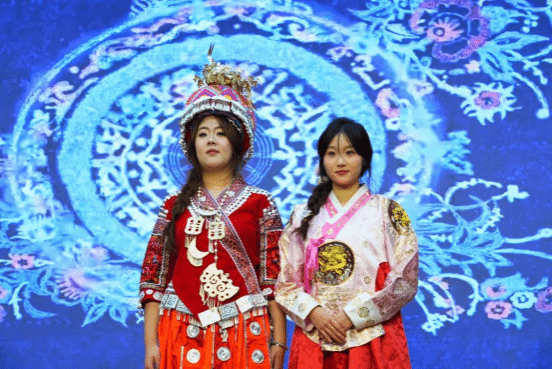 12月20日上午,在长清区崮云湖街道三楼大礼堂举行了以“中华民族一家亲 同心共筑中国梦”为主题的文艺演出。此次活动由长清区委统战部、山东艺术学院党委统战部、崮云湖街道党工委联合主办,国际艺术交流学院应邀参加并进行民族服饰展演。