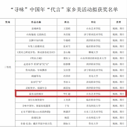 近期,国际艺术交流学院学子在多项校内外赛事中绽放光彩,凭借扎实的专业功底与卓越的创新能力,在山东艺术学院举办的 “红色回响” 经典配音大赛和山东省社会科学界联合会主办的“寻味中国年”大学生“记录春节”作品征集赛中斩获殊荣。