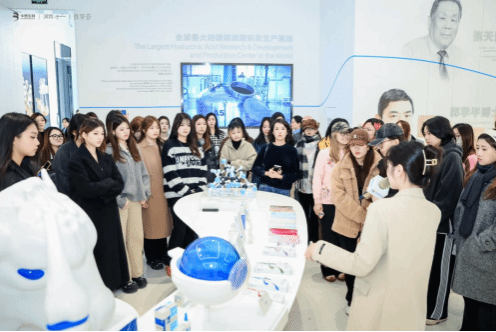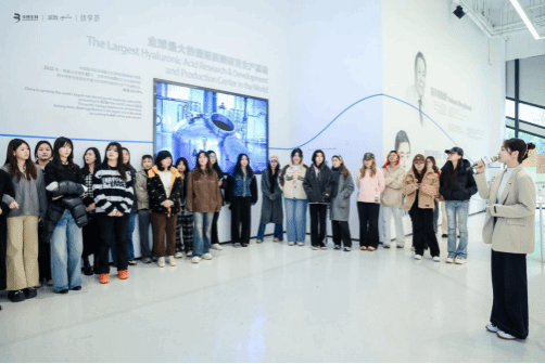 随后,同学们在讲解员的引导下参观了透明质酸博物馆,深入了解透明质酸从发现、研究到开发与专业应用的完整历程,并观摩了相关的精密提取设备。