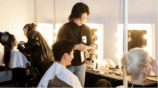 从济南校园奔赴北京时装周现场,三位学子迅速适应后台高强度的工作节奏。这里流程紧凑、环环相扣,相较于课堂上的细致练习,秀场更注重效率与专业适配度。她们快速调整状态,严格依照秀场主题与服装风格,为模特打造契合舞台效果的妆容。