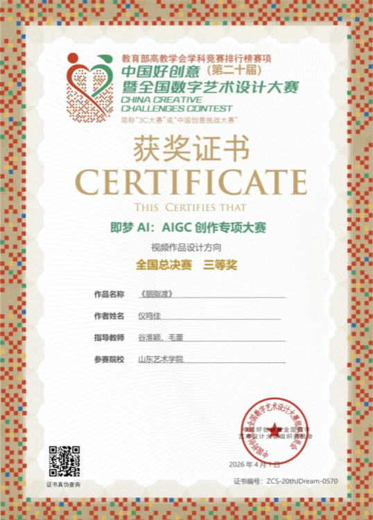 此次获奖不仅是对参赛学子个人专业能力的高度肯定,更是国际艺术交流学院深耕实践教学、坚持以赛促学、以赛促练教学理念的丰硕成果。长期以来,学院始终高度重视教学与实践的深度融合,积极为学子搭建优质的创作与展示平台,助力学子在实践中提升专业能力。未来,国际艺术交流学院将继续完善实践教学体系,为学子提供更多优质资源与发展机会,鼓励学子在艺术设计领域不断探索创新、精进技艺,在更多高水平赛事中再创佳绩、再谱新篇。